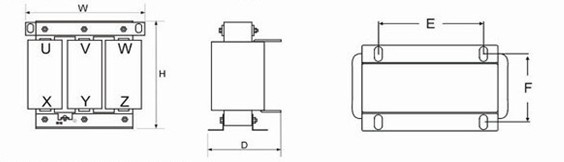 | 產(chǎn)品型號(hào) | 額定電流 | 電抗率 | 電容容量 | W | D | H | E | F |