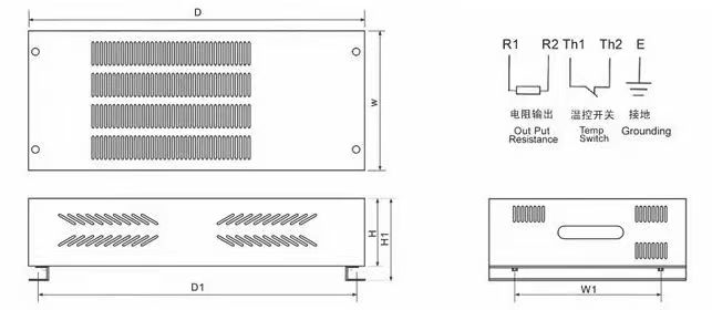 產(chǎn)品尺寸表2:(內(nèi)置螺紋電阻器、散熱風(fēng)機(jī),接線處外置).