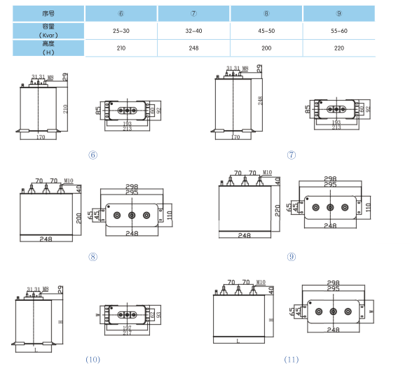 | AC-BSMJ1/0.4-20-3 | 0.4 | 28.9 | 20 | 398.1 | 50/60 | 167 | 57 | 210 |