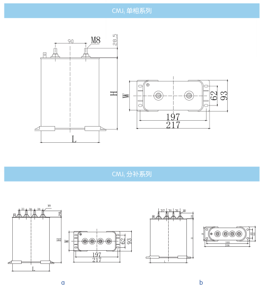分相補償并聯(lián)電容器:出線兩個端子/四個端子,接線方式均為星形接法。